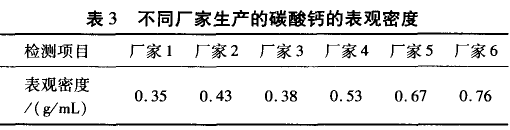 粉体表观密度是指未压缩下单位粉体体积的质量。轻质碳酸钙粉体属于多孑L性颗粒聚集体,其表观密度反映了颗粒聚集状态和孔隙状态。碳酸钙的加工性能往往与碳酸钙的颗粒特性有一定关系,而与碳酸钙颗粒特性直接有关的粒度分布、孔隙率、孔径和孔径分布、比表面积、密度分布、颗粒形态等数据,对轻质碳酸钙的使用企业检测有一定的困难,但与CaCO3 颗粒间接特性有关的表观密度,其检测依据聚氯乙烯树脂的表观密度检测方法 ,其检测设备简单、容易操作,PVC硬制品生产企业可以比较容易检测。