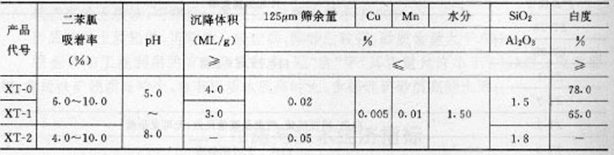 表5 橡胶工业用高岭土粉各级产品化学成分和物理性能要求