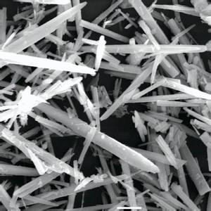 针状:针状碳酸钙形貌类似针形,长径比较高,其粒度一般采用径向尺寸和长径比加以定义。当针状碳酸钙形状作为功能性填料添加到橡胶、塑料、纸张等制品中,可以有效地提高制品的机械性能和体系的流变特性、加工性能;同时针状形貌碳酸钙相对于工业化开发和市场开发都较为成熟的立方形碳酸钙来说,针状碳酸钙的极少发生团聚现象,针状碳酸钙更易于分散,赋予应用体系更好的增强、增韧功能。