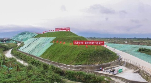 此外,堆场削坡排危、堆场周边拦挡墙、回水调节池及雨水回用系统、监测井及安全监测设施等五项工程已经全面完成,现在正在进行堆体覆盖及雨水导流系统设施的建设。