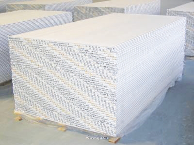 ③耐火纸面石膏板。耐火纸面石膏板是以建筑石膏为主,掺入适量无机耐火纤维增强材料构成芯材,并与护面纸牢固黏结在一起形成的耐火轻质建筑板材。其面纸为红色,背纸为灰色。质量好的耐火纸面石膏板选用耐火性能好的无碱玻纤,一般产品选用中碱或高碱玻纤。
