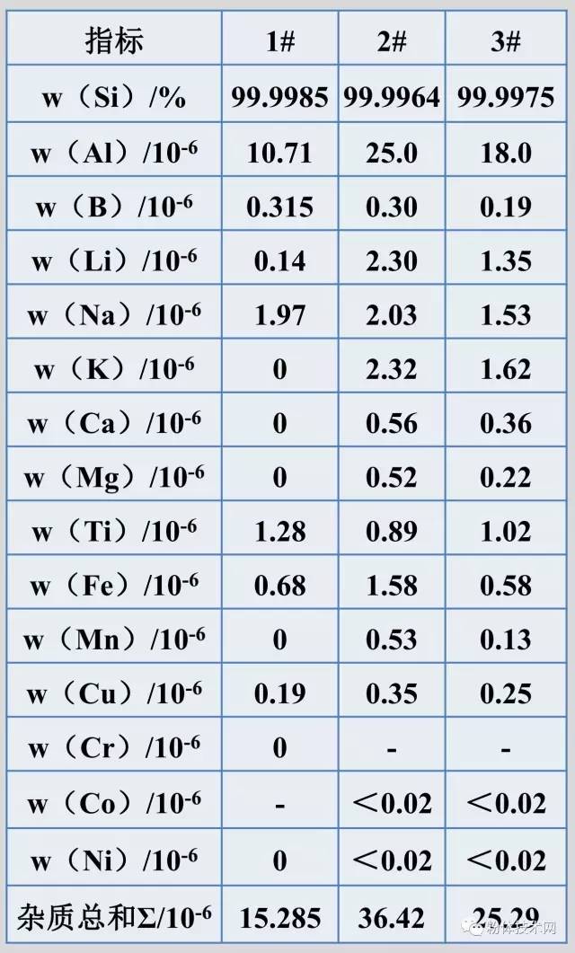 表1脉石英加工的高纯石英样品的ICP-OES检测结果