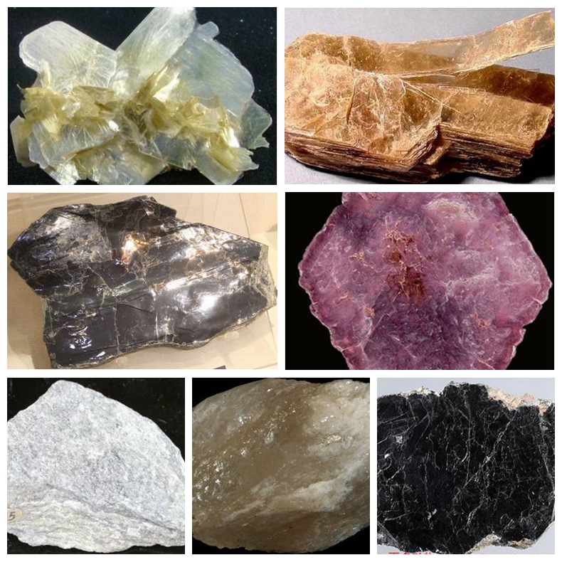 云母可分为白云母、黑云母和锂云母三大类。白云母化学成分为KAl2(AlSi3O10)(OH)2,其硬度为2-2.5,可剥分到10左右。金云母化学成分为KMg3(AlSi3O10)(F,OH)2,其硬度2.78-2.85,可剥分成5-10左右。(详情请点击:1分钟云母矿物功能材料)