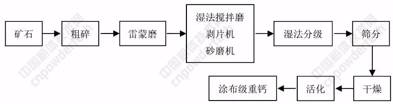 ▲雷蒙磨作为预磨设备生产涂布级重钙工艺流程
