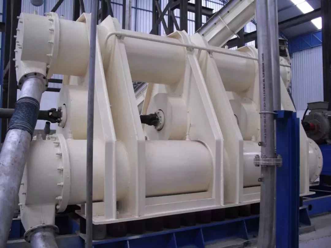 球磨机是大型重质碳酸钙生产线的主要设备,配置各类分级机后用来生产d97=5μm、10μm、16μm、45μm等粒级的重质碳酸钙产品,其特点是单机处理能力较大,因此成为目前5万/年以上大型超细重质碳酸钙生产线的优选设备之一。