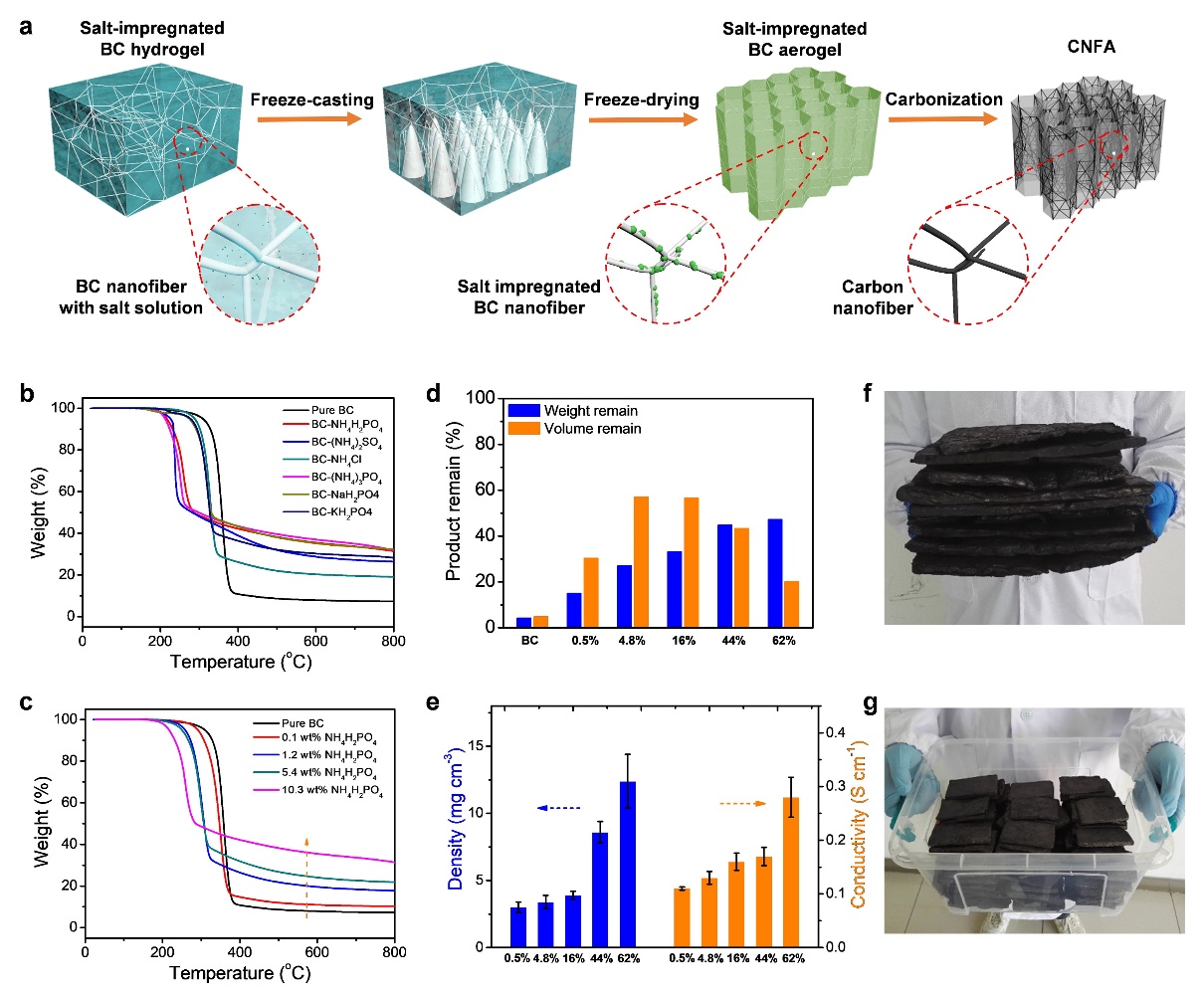 日前,从中国科学技术大学获悉,该校俞书宏院士研究团队与梁海伟教授课题组合作,通过热解化学控制,将结构生物材料热转化为石墨碳纳米纤维气凝胶,其完美地继承了细菌纤维素从宏观到微观的层次结构,具有显著的热机械性能,并实现了大规模合成。相关成果日前发表于《先进材料》上。