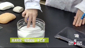 项目组负责人、中科院重庆绿色智能技术研究院研究员崔月华展示了他们研发的“泡沫瓷砖”。看起来和火山石很像,表面粗糙,但重量很轻,每立方厘米仅重0.2克,放在水里能漂浮。在酒精灯500℃高温的烧灼下并未起火,而且另一侧温度仅四五十摄氏度。