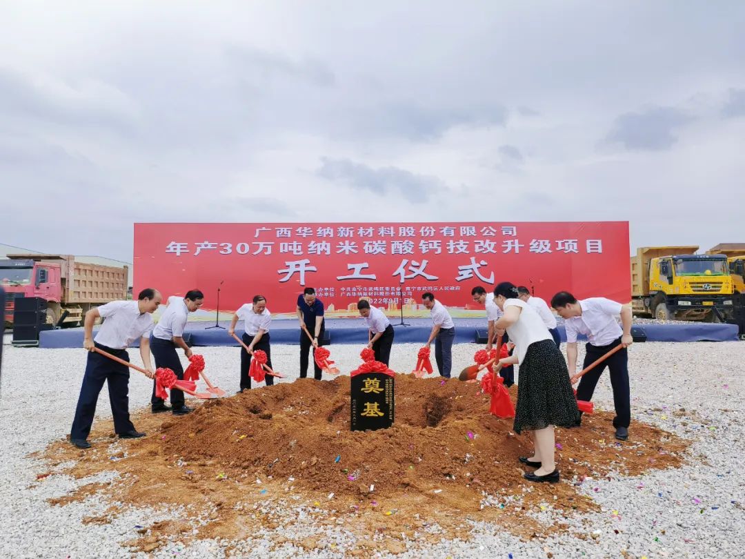 9月1日,“广西华纳新材料股份有限公司年产30万吨纳米碳酸钙技改升级项目开工仪式”在广西南宁市武鸣区甘圩镇武鸣新材料产业园隆重举行。项目总投资10亿元,采用“拆旧建新”技术改造的模式,拆除闲置的30万吨碳酸钙落后生产线,升级为年产30万吨高端纳米碳酸钙新生产线。技改建设完成后,广西华纳武鸣基地的产能不变,仍为年产61万吨。